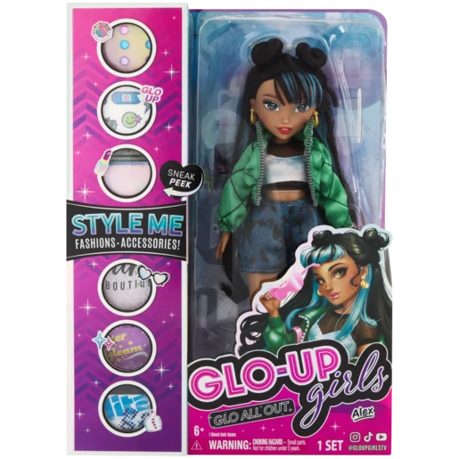 - INCLUDES – Alex Glo-Up Girls Season 2 doll with different accessories, jewelry, fashions, makeup, stickers, and more.