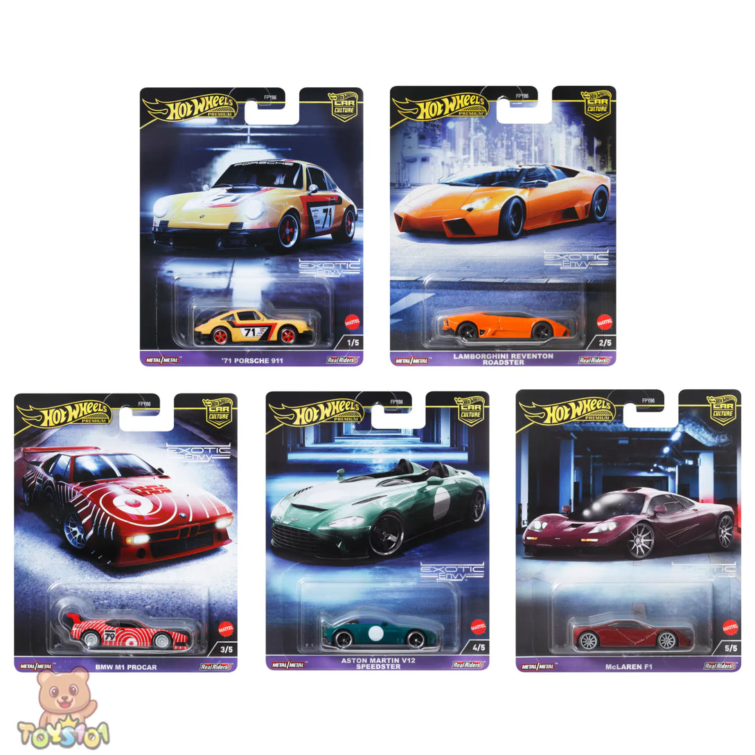 Each car in this Hot Wheels Premium Car Culture Exotic Envy assortment is a 1:64 scale masterpiece, featuring Metal/Metal construction, Real Riders wheels, and authentic details that collectors crave. Whether you’re racing in your imagination or building the ultimate display, these five exotics are ready to steal the spotlight.