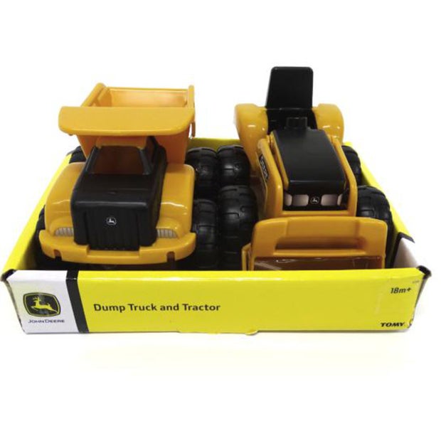 This two piece construction set includes dump truck with working dump bed and tractor with working front loader. Ideal for the sandpit, both are made of rugged, heavy duty plastic for endless hours of play