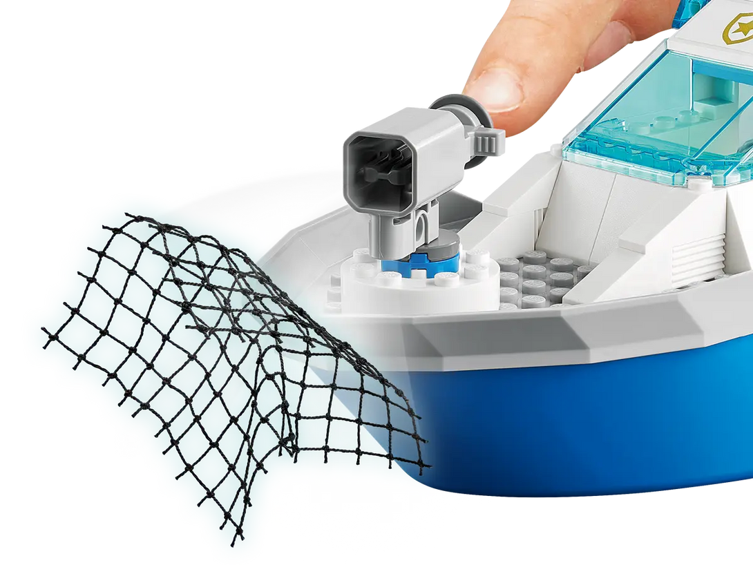 Set sail for action-packed adventures with the LEGO® City Police Patrol Boat! This 276-piece floating vessel is perfect for kids aged 5 and up who love imaginative play and crime-fighting excitement. With a detailed control station, surveillance drone, and net shooter, young builders can chase down crooks and keep the LEGO City waters safe.