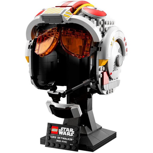 Feel the power of your creative Force as you build the collectible Luke Skywalker (Red Five) Helmet (75327). This buildable model of Luke's iconic pilot headgear is the first-ever hero helmet or open helmet in the LEGO Star Wars collection. Channel your inner Jedi to recreate authentic details, including a brick-built microphone and interior padding, plus translucent red visor elements. Add the integrated stand with nameplate to complete a striking display piece.