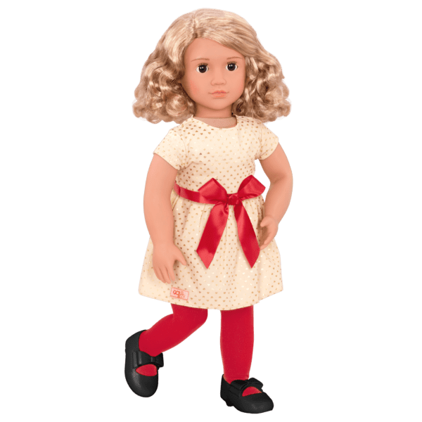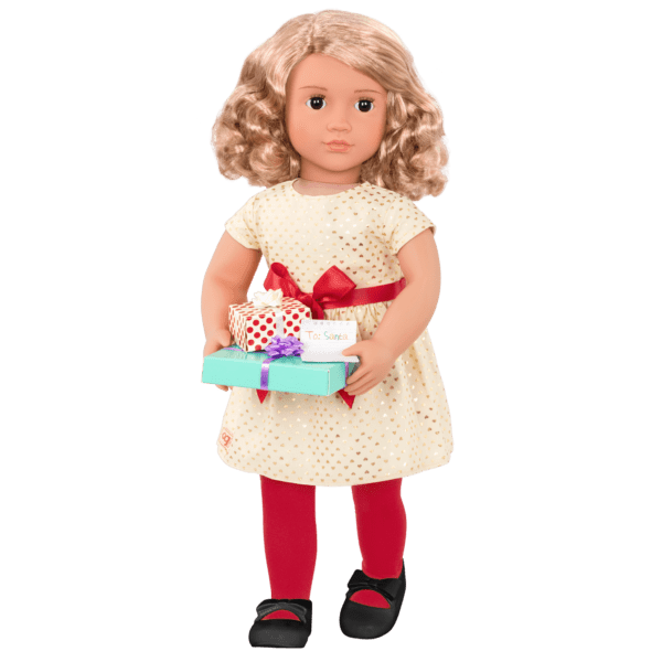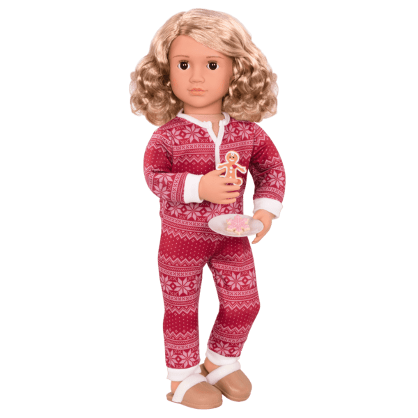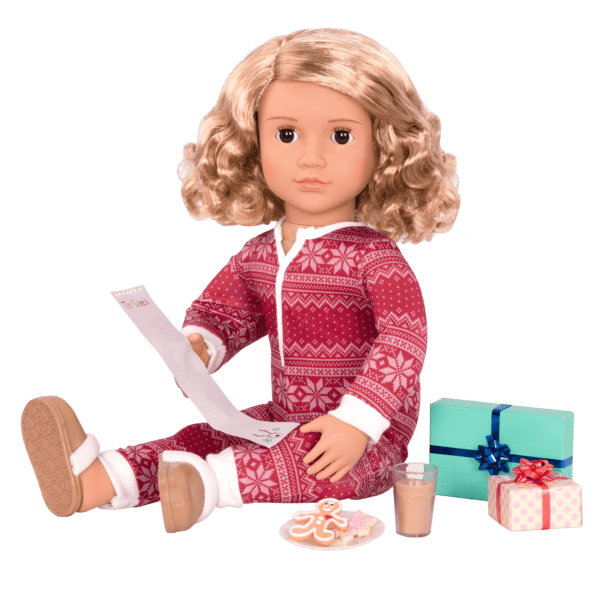 Make room around the toasty fire this holiday season with the Our Generation Deluxe holiday doll – Noelle! A beautiful doll with shoulder-length blonde hair with wavy ends and warm brown eyes.