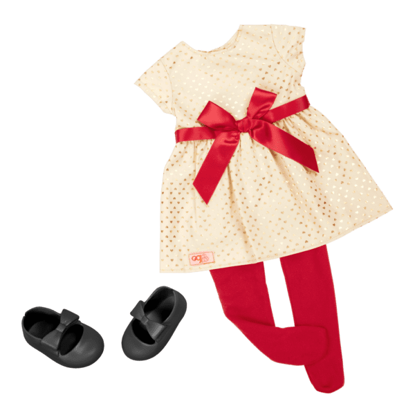 This Christmas doll is ready for holiday activities! Noelle is posable, which means she bends at the knees and elbows, and also rotates at the neck, shoulders, and hips! She might sneak a peek at your presents! This holiday doll features a stunning dress with a mini, gold-heart pattern and a bright red bow at the waist. Noelle even arrives ready for night time with a holiday-themed onesie, so you can cozy up beside the fire and wait for Santa to drop in! Read about how Noelle finds the true magic of Christmas as you follow her adventure in the “Sneaky Santas” storybook and create your own holiday story with this inspiring collection.