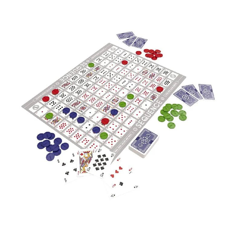 - Contents: folding game board, sequence playing cards, 135 playing chips, game instructions